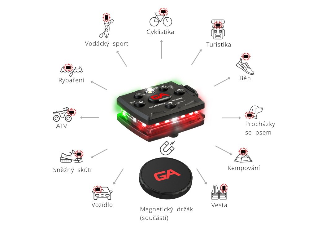 - Příslušenství – Micro funguje se všemi držáky a příslušenstvím Guardian Angel, včetně mnoha pro sport a jiné aktivity.