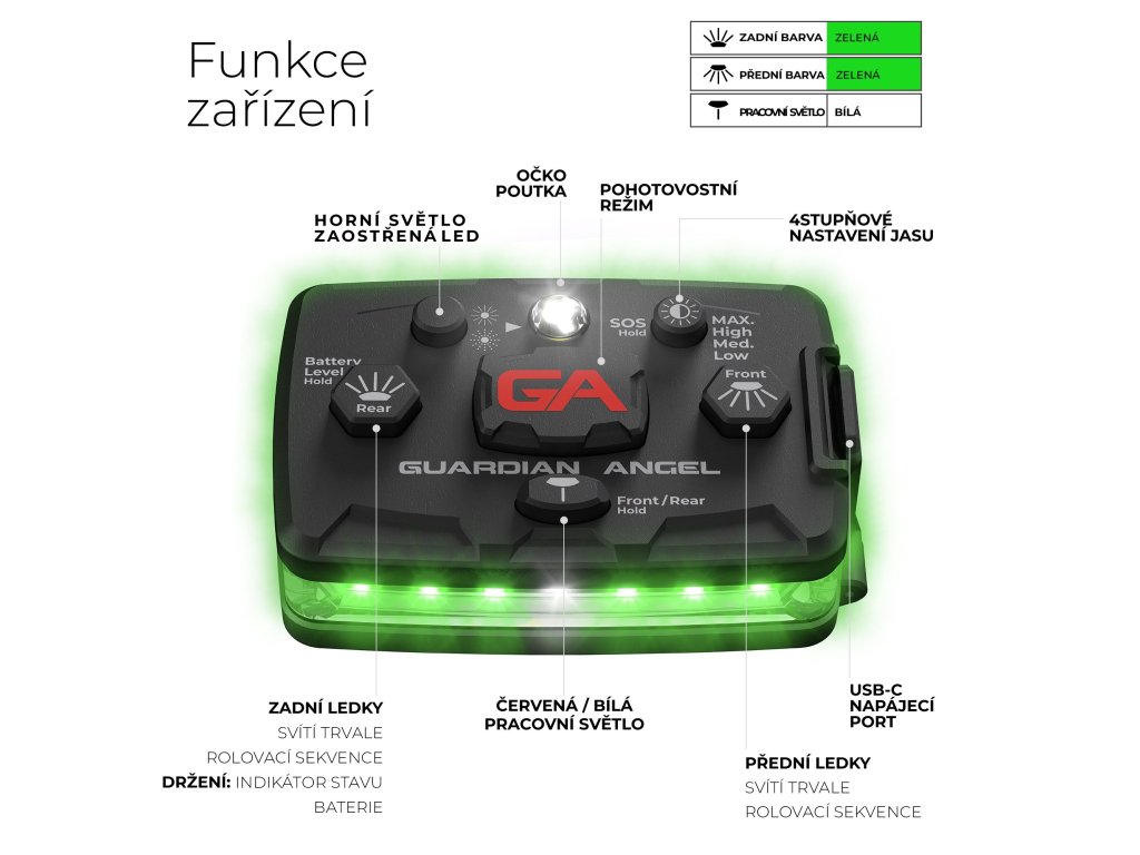 - Viditelnost na velkou vzdálenost – testována viditelnost na více než 8 km pomocí vysoce výkonných LED diod, 360° NOSITELNÉ OSVĚTLENÍ