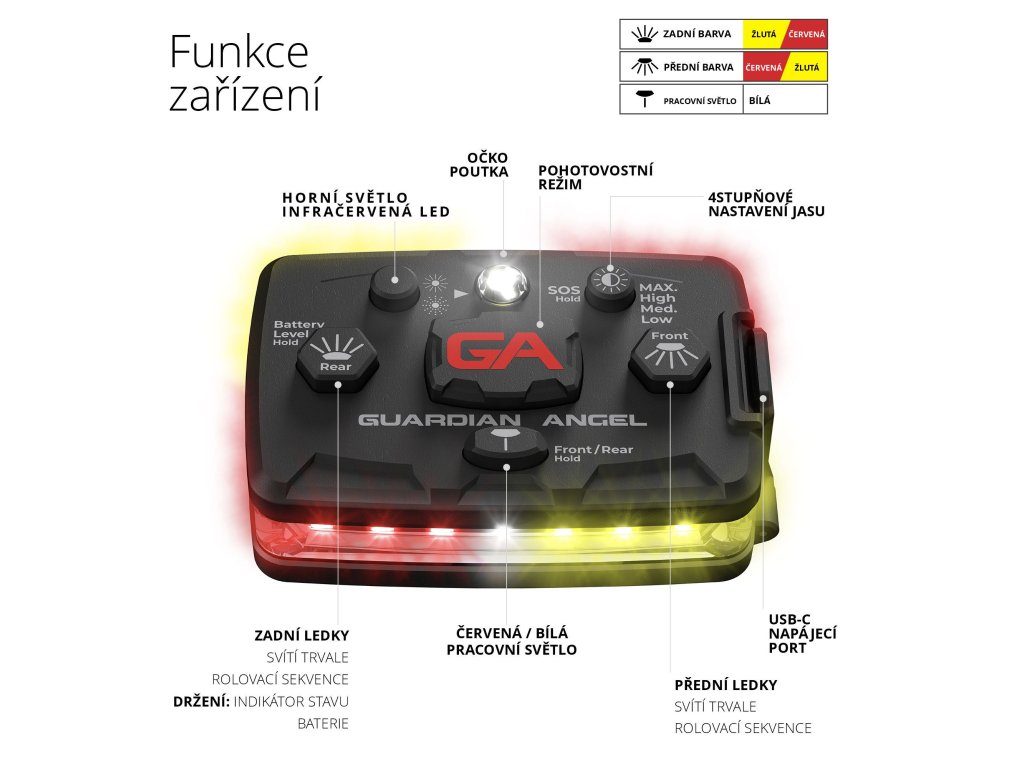 - 360° OSVĚTLENÍ – Každá strana má trvale zapnuté, neustále blikající nebo konstantně rolující schémata