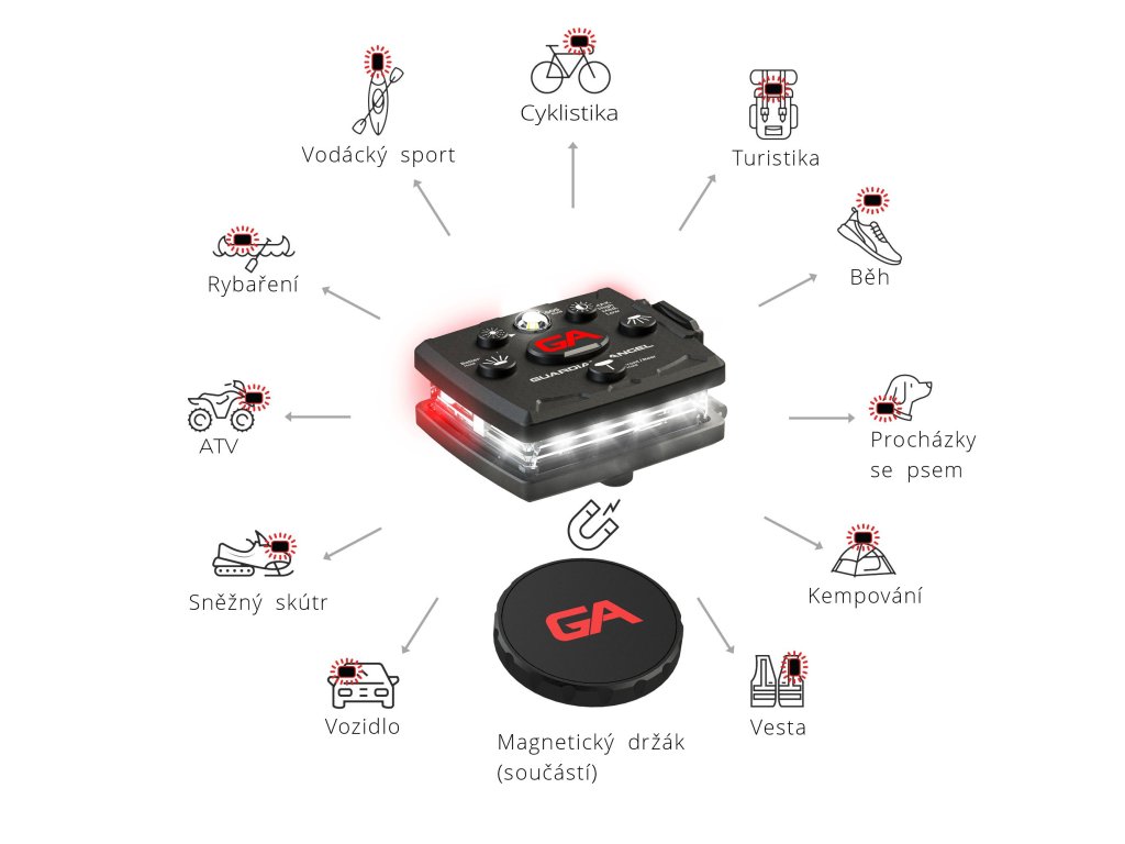- Příslušenství – Micro funguje se všemi držáky a příslušenstvím Guardian Angel, včetně mnoha pro sport a jiné aktivity.