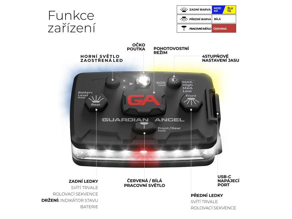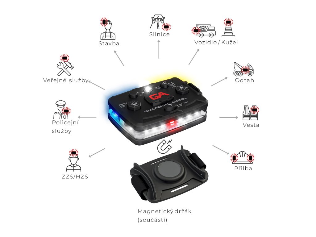 - Viditelnost na velkou vzdálenost – testována viditelnost na více než 8 km pomocí vysoce výkonných LED diod, 360° NOSITELNÉ OSVĚTLENÍ